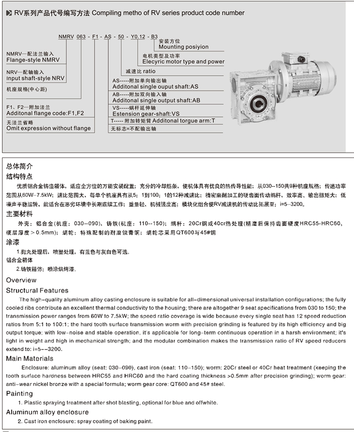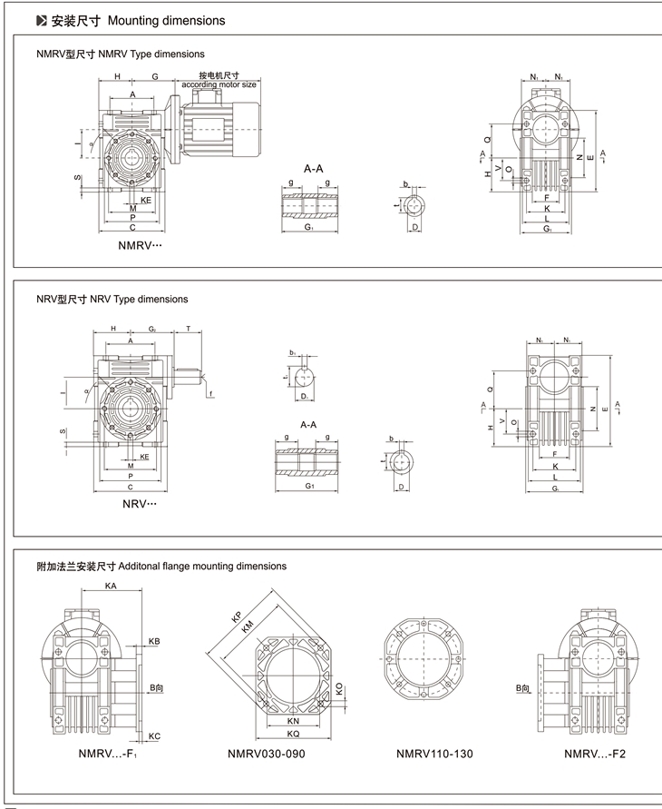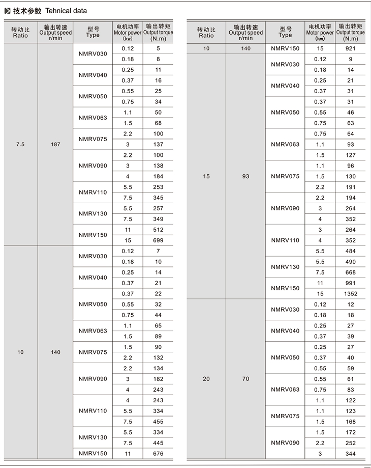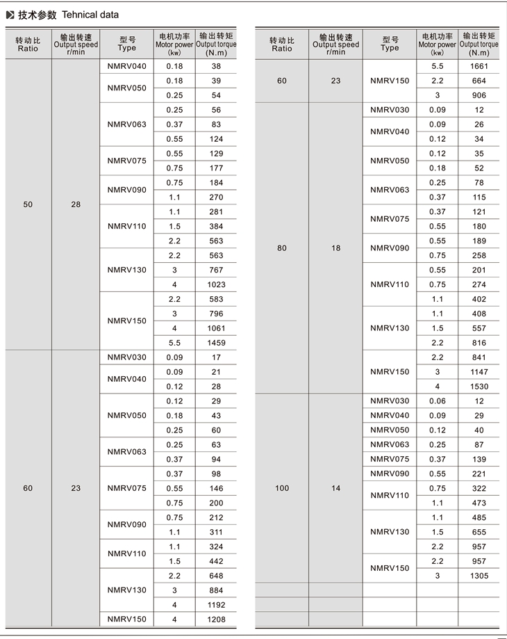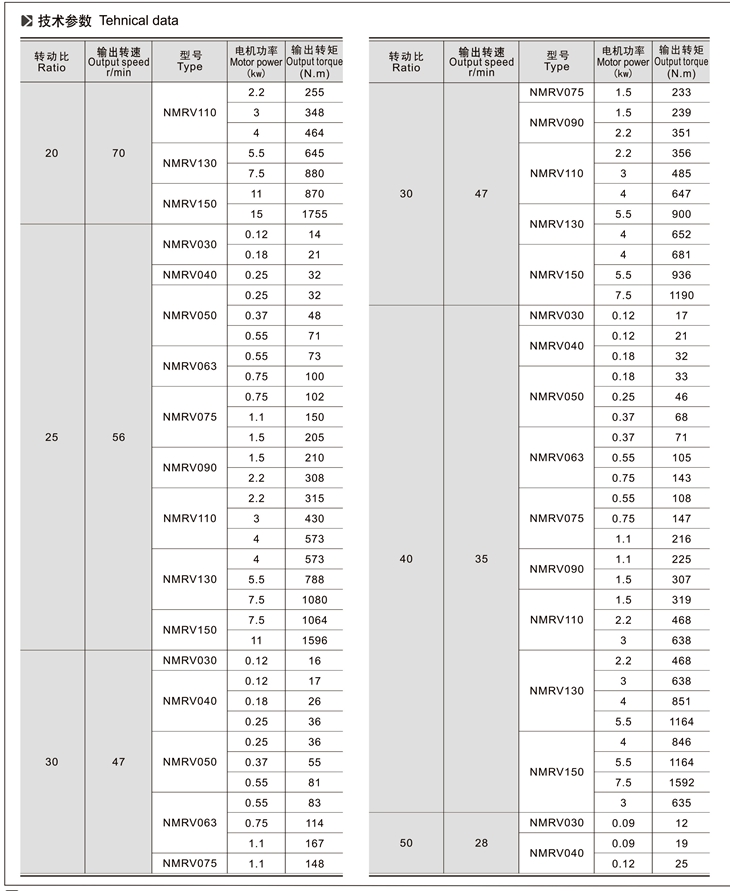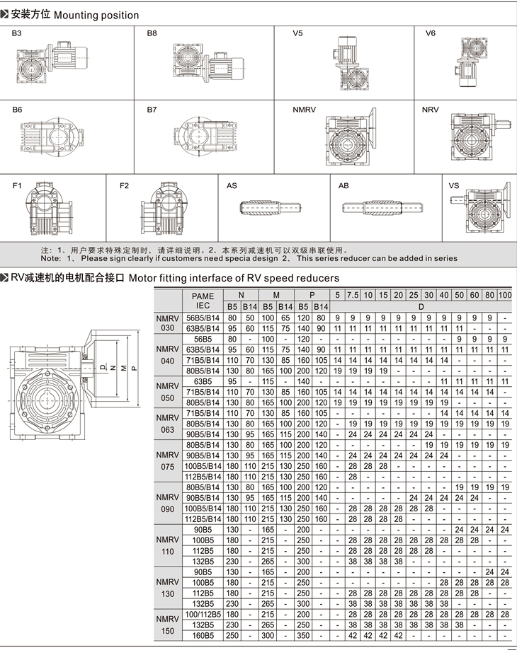 4、與RV、NMRV、NRV蝸輪蝸桿減速機(jī)配套的電機(jī)必須合適在低溫環(huán)境中工作;