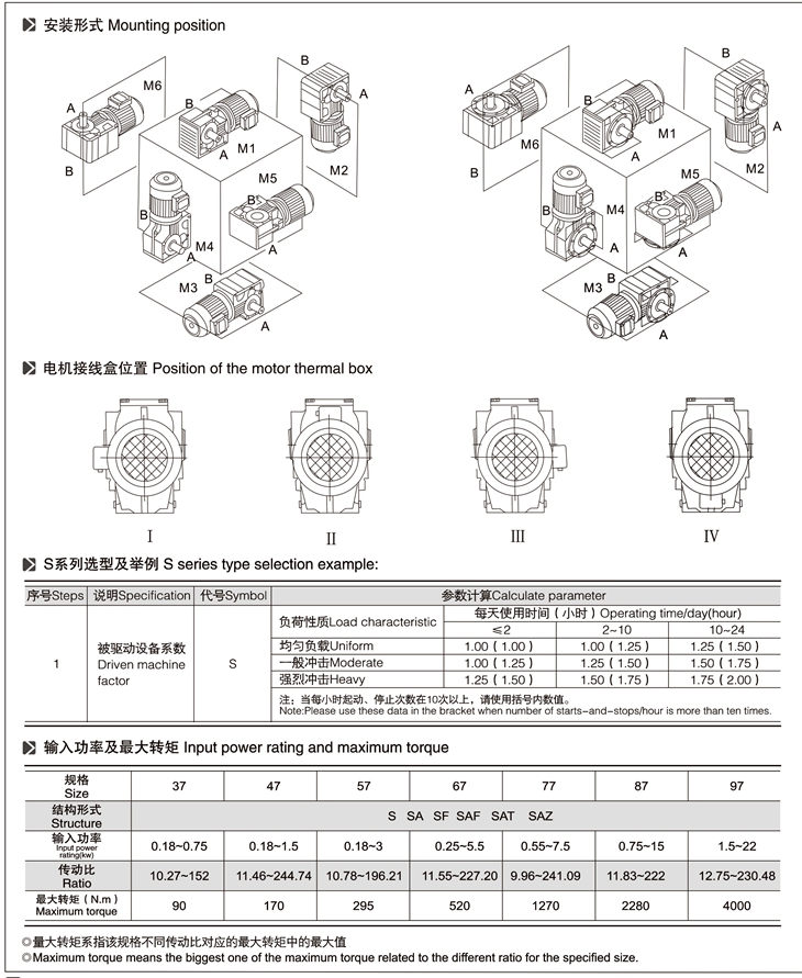 4、S系列斜齒輪蝸輪減速機傳動精度高,特別適應在有頻繁啟動的場合工作,可連接各類減速器及配置各類型電機驅(qū)動,可安裝在90度傳動操作位置。
